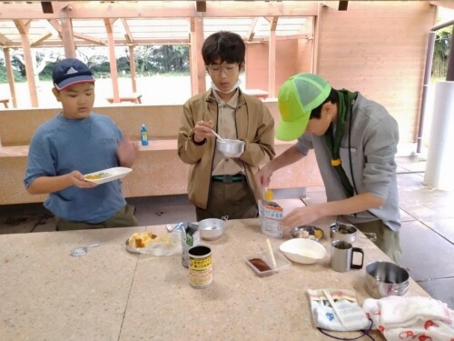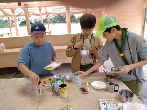 10月隊集会 10月13日 海上キャンプ場で土砂降りの雨の中、立ちかまど作り!