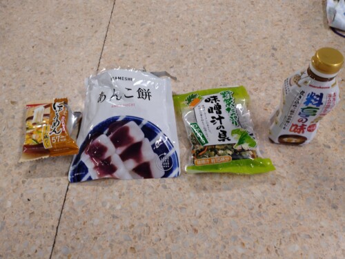 「にゅーめん」、「あんこ餅」、「味噌汁の具」と「味みそ」で味噌汁