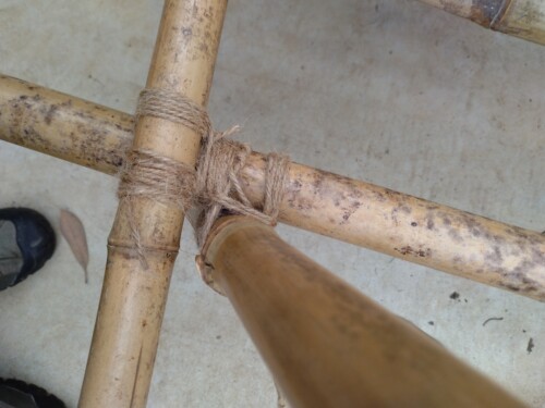 「角しばり」でAフレーム作り、Aフレーム2組をつなげて