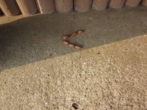 矢印の形、木が無いのに木の実 誰かが置いた!
