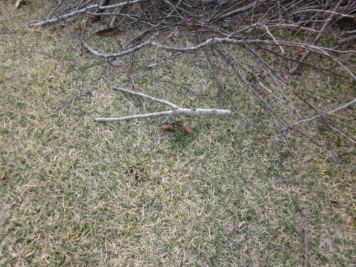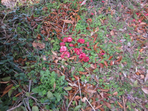 ツバキの木の下に花が落ちてる、矢印には落ちないだろう?