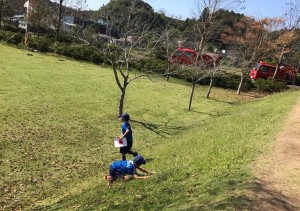 言われた、国旗を探しに右往左往しながら・・・いい運動です♫